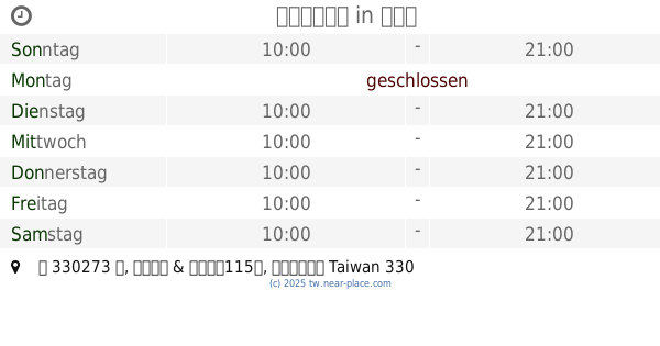 | Donnerstag | geschlossen | |||||