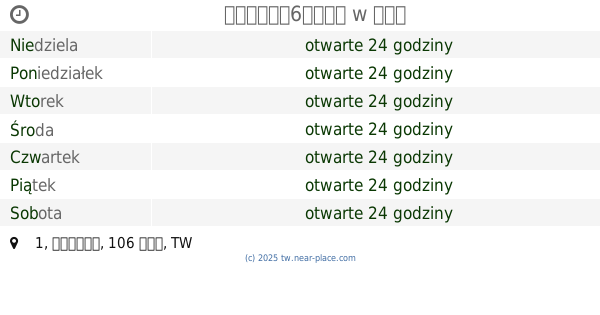 | Niedziela | otwarte 24 godziny | |||||